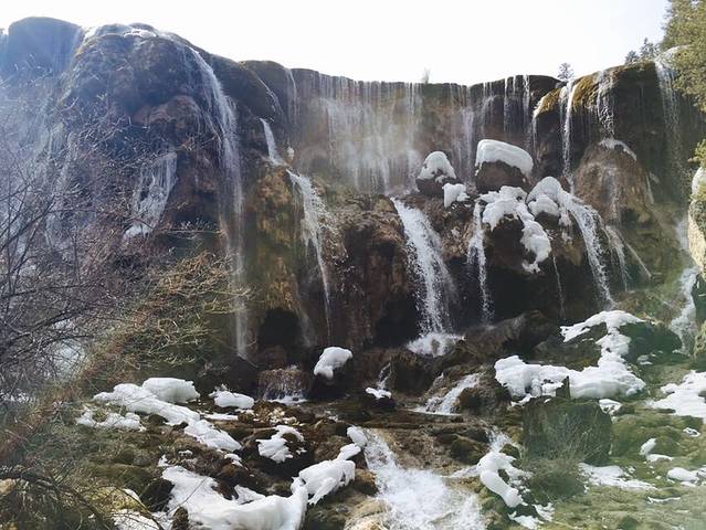 我们在酒店附近吃过早饭后步行前往九寨沟售票处,大概10几分钟的路程。2月是九寨沟的旅游淡季,学生票40,观光车80,也不算太贵。九寨沟观光车在诺日朗中心分两条路线,分别开往原始森林和长海。我们是先沿日则沟到达箭竹海,然后再返程经过熊猫海、五花海、珍珠滩瀑布(这里是旧版西游记的拍摄地~~)和镜海,在中午12点时到达诺日朗餐厅享用午餐。九寨沟内只有诺日朗中心这一个吃饭的地方,餐厅内好像是提供人均60的自助餐,也可以自带餐食。对于学生党来说,经济实惠的自热盒饭无疑是最佳的选择。午饭后,我们继续从诺日朗中心出发,乘坐观光车到达五彩池(九寨沟最美的一个景点),同样的返程经过查洼寨,里面售卖各种纪念品和好吃的~~临走前看到门口的有卖现打的青稞酥,我超想试一下用大锤子打青稞酥的感觉,但因为已经颇晚,加上我们在这个寨子待了挺长时间,就没有尝试,只是买了一包青稞酥(味道比山下的要好吃),后悔死了%>_<%,我们沿着返回的路线游览各个景点,差不多4点回到景区门口。