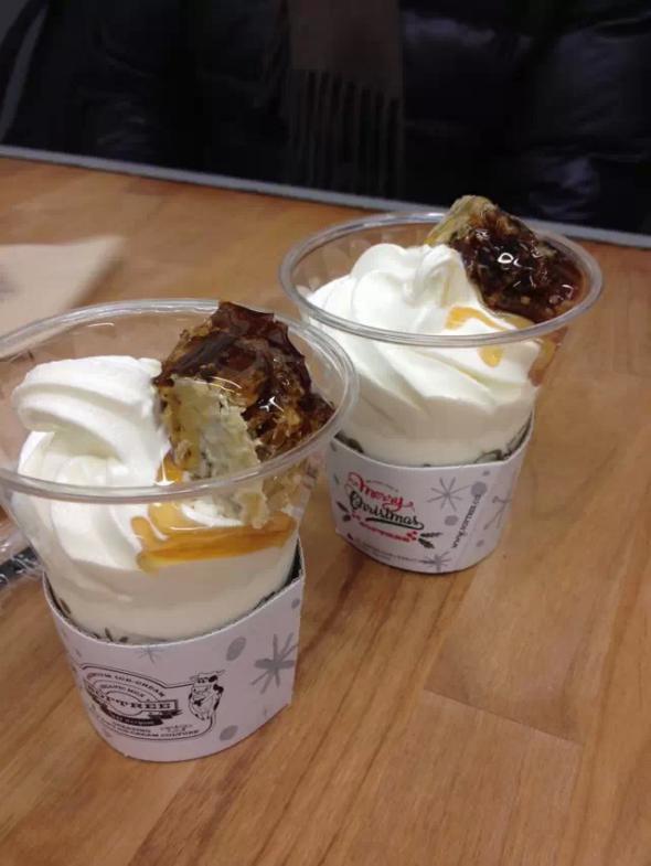 甜品买了蜂蜜雪糕,真材实料,一大块蜂蜜在上面,这个价钱就是50多块人民币。