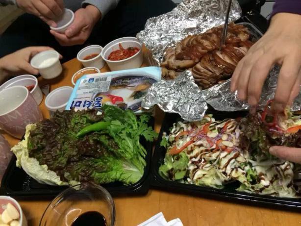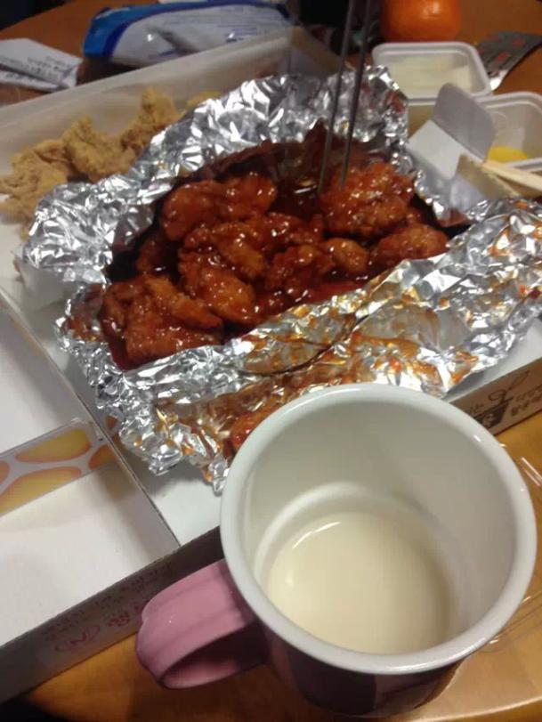 晚餐终于吃了炸鸡和啤酒,电视剧一直在看,因为那部来自星星的你,现在全中国的人来韩国必点炸鸡和啤酒,好像没有吃过就不算来过韩国似的。一天的拍摄真的太累了,我们直接打包回酒店吃,准备明天正式的蜜月行程。