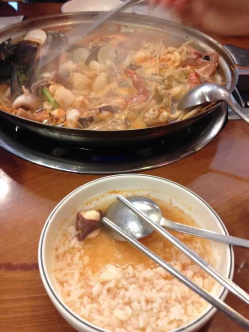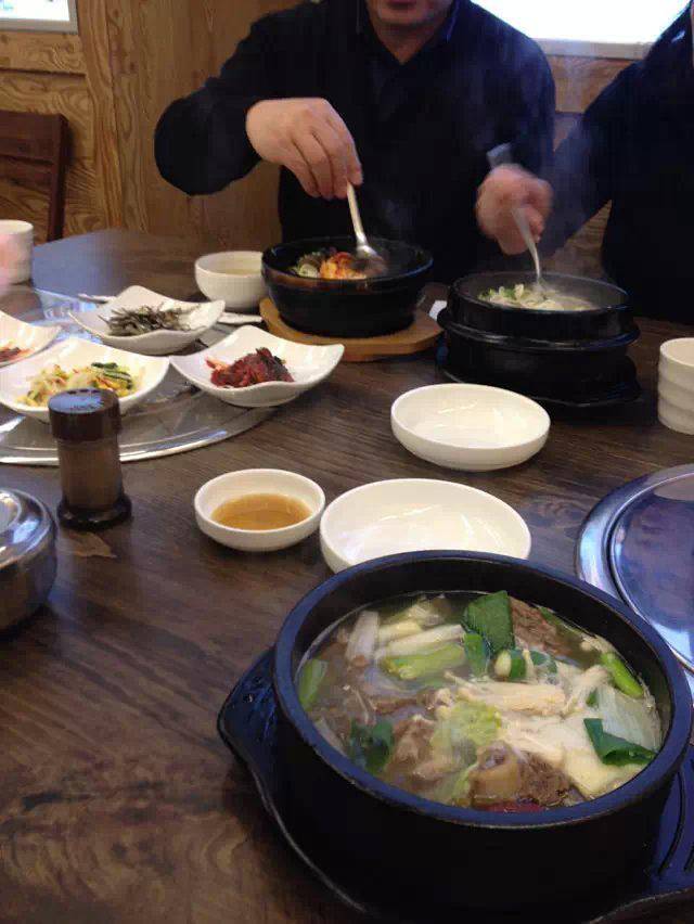 午餐,因为下午还要继续拍摄,所以自己就没敢吃太多,怕肚腩出来了(穿婚纱还是会有限制的),我就只吃了一个牛尾汤饭,老公要了参鸡汤饭,味道真的很浓,和在中国吃的很不同。