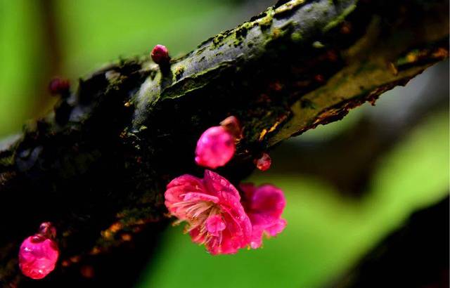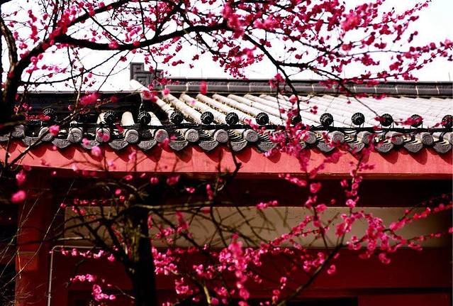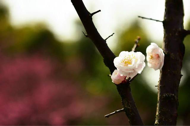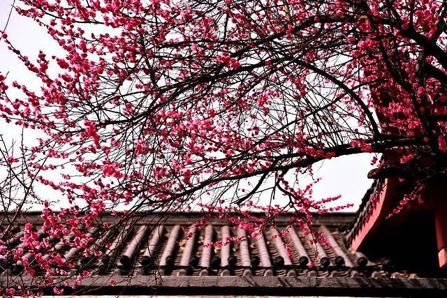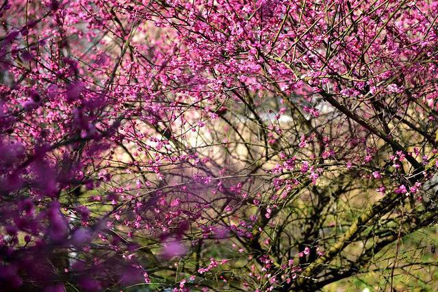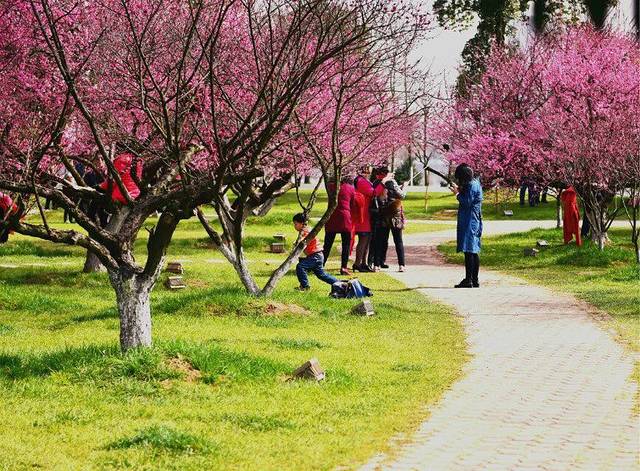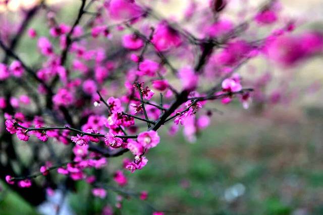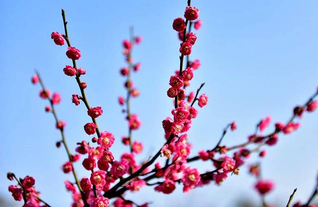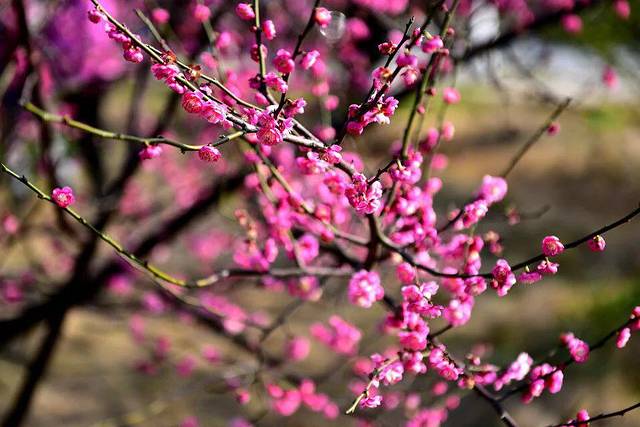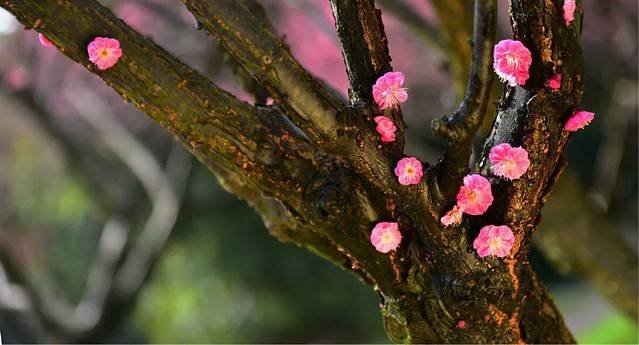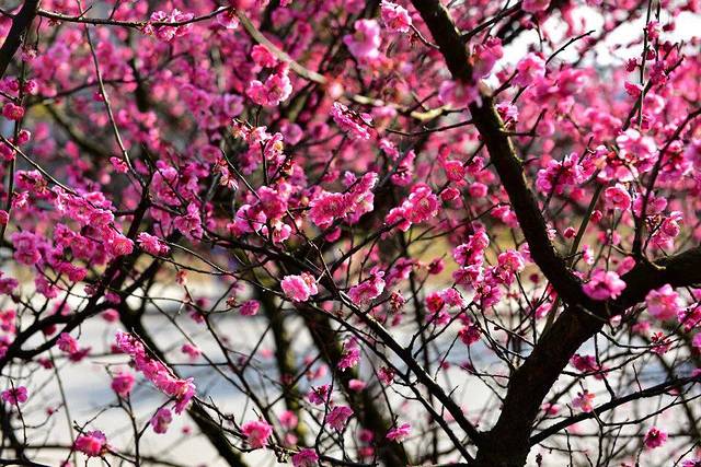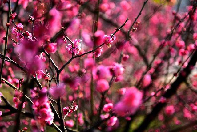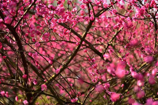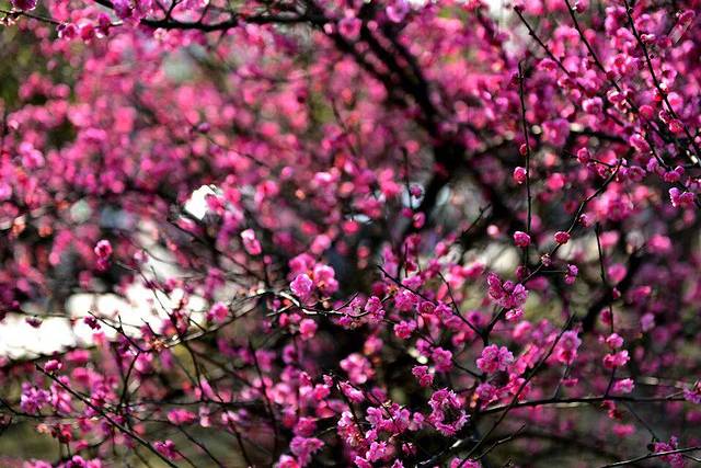 及至身临其境,果然名不虚传。元宵前后,恰是岁末年初,梅花盛时。数百棵梅树同时绽放,凌风傲寒,竞丽争艳,花海荡漾,蔚为壮观。红梅灿若朝霞,白梅淡若梨花;密枝繁葩似锦,疏条廖若晨星;怒放的绚丽烂漫,含苞的娇姿惹人。置身园中,恍若已是繁花盛开的仲夏,叫人全然忘了还是新春时分、湿冷季节。