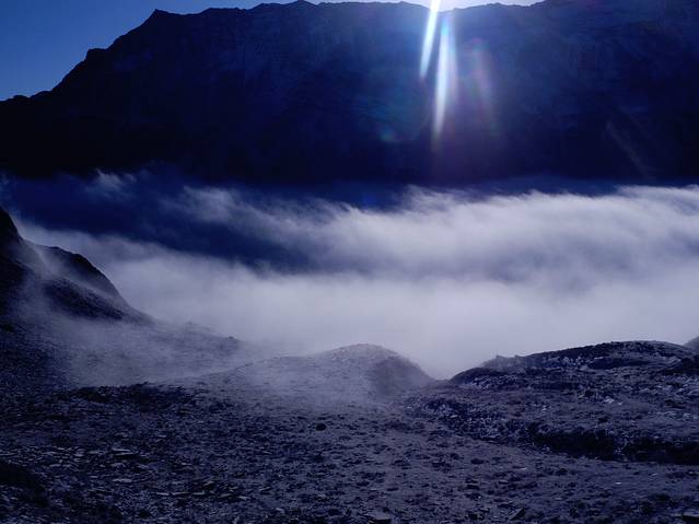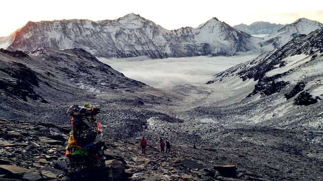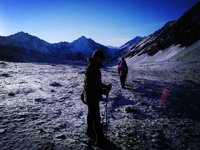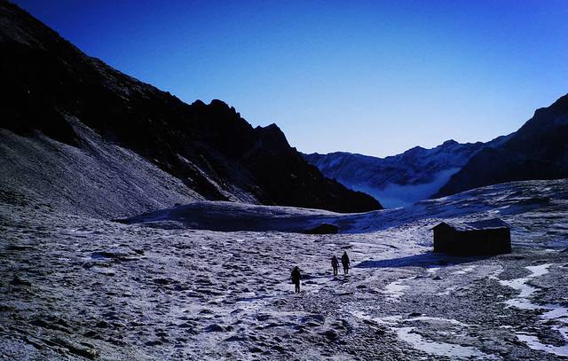 受虐的身体在眼前的美景里得到了最大的慰藉。这也使得总是在回到生活中后忘记受虐的身体,只记住了心里对于美的享受。因此,下撤到大本营时,当我问老杜是否遗憾时,他说,人生哪有不遗憾的,而这一次应该也是他最后一次登山了。然而,当回到生活中后,老杜又想着还可以登登二峰,甚至三峰。而我不安分的心也开始想着明年再去见二姑娘。
