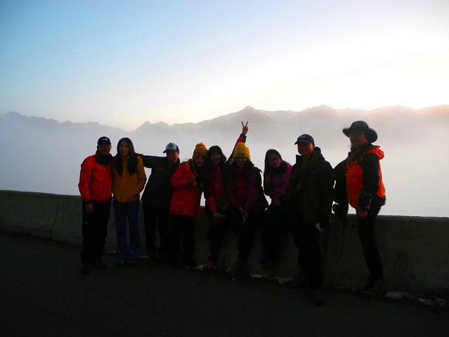 不知是运气好,还是巴郎山的故意而为之,当我们尽情享受着这美景,尽情按着快门,合完影后,大雾再次来袭,将刚刚的美景再次蒙上神秘的面纱。还好,有幸见到真容。
