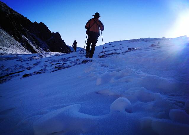 四姑娘山,分为大峰(海拔5038米)、二峰(海拔5276米)、三峰(海拔5355米)、幺妹峰(海拔6250米,据当地人说,全世界目前真正登上幺妹峰之顶的只有8人)。而选择二峰,只因觉得二峰的难度系数应该没问题。大峰容易,三峰难度太大,幺妹峰更是可望而不可及的。然而,对于难度系数似乎太乐观,或者说是对自身的体能太过看好。