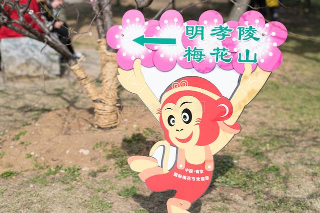 猴年的初春,公园里指示牌也换成了可爱的小猴子造型。梅花山面积很大,好在一路上都有明显的指示牌,不至于走错路。