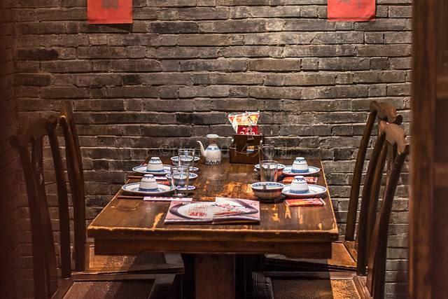 大厅里挤满了人,这家店面积不小,生意十分火爆。好在我们提前订位,餐桌都是古色古香的木质结构。餐厅里的装修很有韵味,头顶的灯就像是古代的灯笼一样,散发出淡黄色柔和的光,墙上的装饰看起来更像是走进了古时南京城里的一户人家,而不是一家餐厅。
