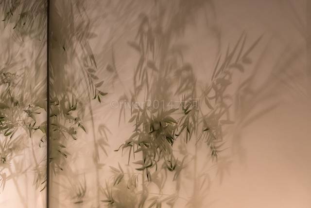 其实这里摆放的是真正的竹子,在前面放置了白色的布缦,竹影投射出来,半遮半掩更有意境。