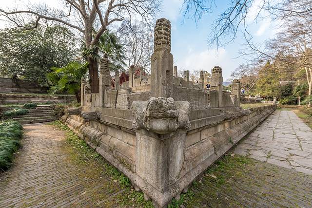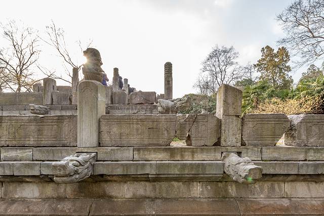 明孝陵的建筑曾经被日本人损坏过,如今见到的大部分建筑都是后来重新修建的,不过一些老的建筑上也能看出来修补的痕迹。