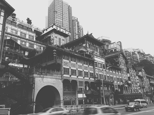 因为是雾都,所以我觉得黑白两色最能描绘重庆,以下是手机镜头下的黑白重庆。