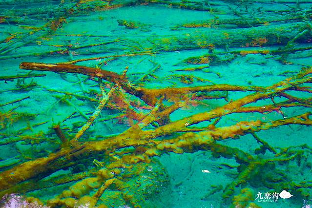 树木在水底下生长,却从来不会枯朽,我想只有九寨沟才有这样的景致吧。水清澈见底,把水下的生物看得一清二楚。