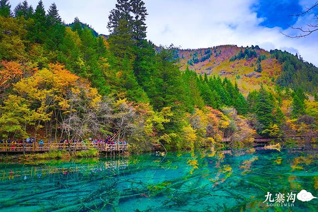 此时此刻我只想把九寨圈起来,像拿走一幅画一样,轻轻装进口袋里,我多想留住秋天的九寨沟,让它永远不褪色。