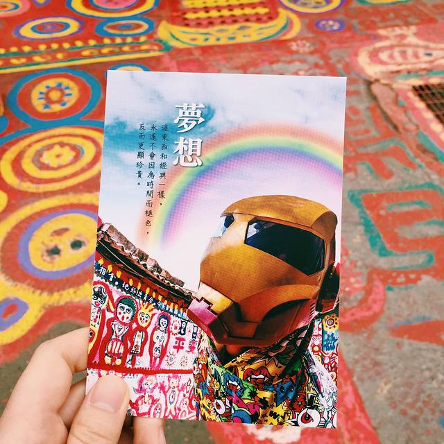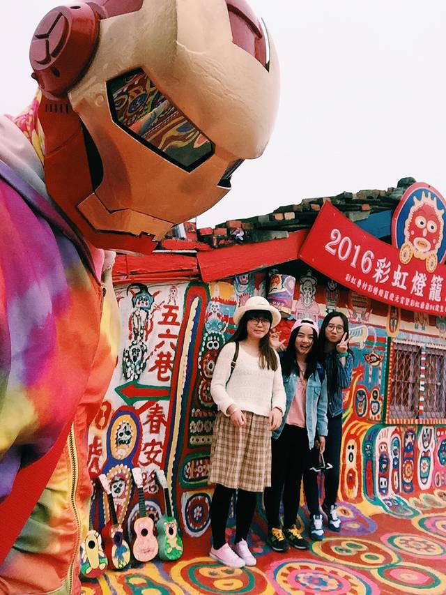 26号,我们睡到八点,洗漱完毕后搭计程车去火车站买了票便乘坐火车北上,大概一个小时就抵达台中火车站。下了车,感觉有点冷,但是由于激动的缘故,便无所谓了。在台中火车站那个公交车站搭乘27路公交车前往彩虹眷村,总共是45个站,消耗了一个半小时,于11点45左右抵达彩虹眷村。彩虹眷村很小,但是真的很美,它起源于住在台中市南屯区岭东科技大学附近有一处旧眷村的八十七岁老荣民黄永阜,因为「无聊」而拿起画笔彩将眷村内的巷弄街道当成了天然的画布,在上头彩绘了各式美丽的彩虹线条与可爱动物,不仅染亮了小村,在网络上引起热烈讨论,更形成一股参访风潮。因他的用色大胆,构图可爱并充满童趣,让到访者有如置身彩虹世界,故网友称此处为「彩虹眷村」。这里是文艺青年装B拍文艺照骗的地方,地方虽小,五脏俱全。(PS在这里,可以拍出许多文艺、诗意、风趣、搞笑的照骗!哈哈哈哈哈)我们在这里呆了一个钟左右便离开了前往下一个景点东海大学。