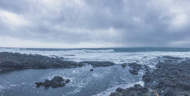 如果游览岛上室外的景点,一定要提前查好天气。因为我们没有太多室内景点要逛,所以早上出门前就做好了心里准备,雾气笼罩加上六级大风还有一天没停过的雨,就这样开始了济州岛第一天行程。