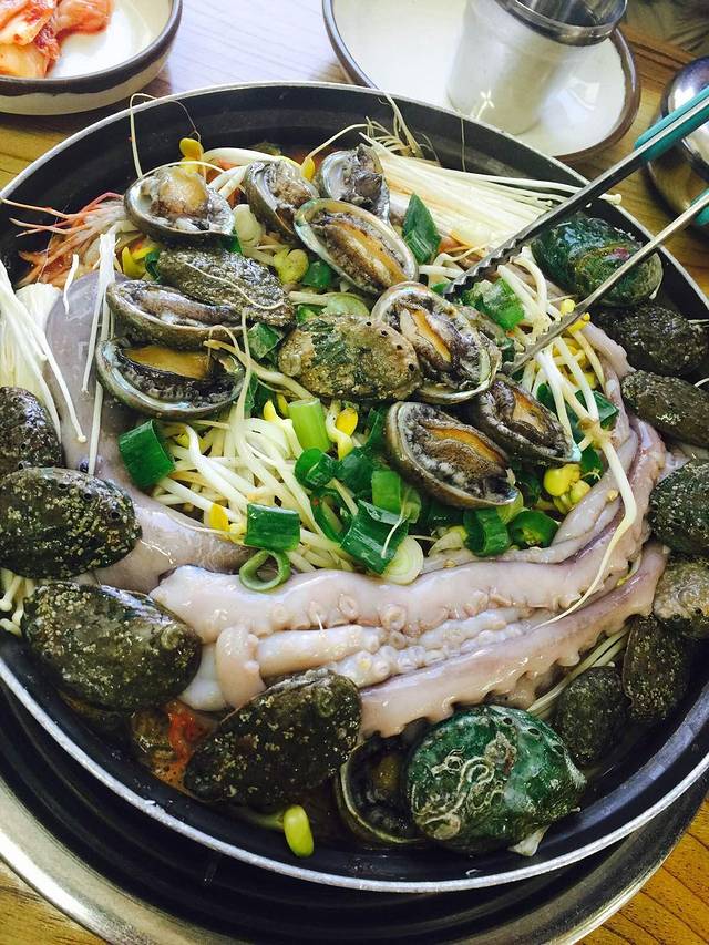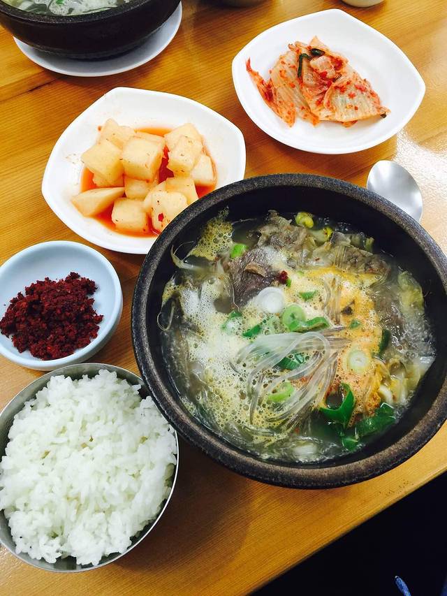 从中文旅游区打车去了西归浦市,这个店是之前大众就找好的,下午三四点不是午饭时间人依旧爆满,很多本地人都会来,两个人不到300软币。