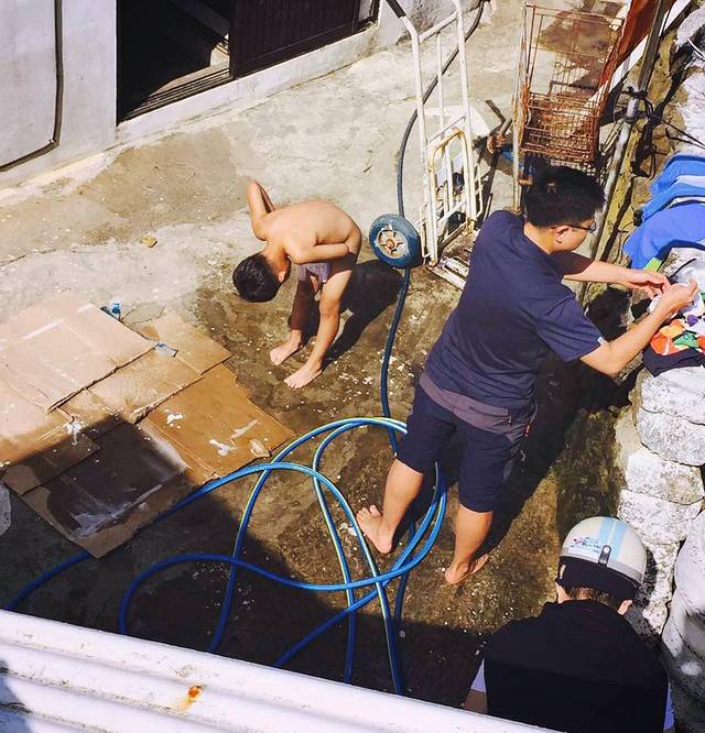游泳回来冲澡的小孩,其实我还拍了一张正面照……