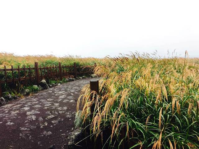 君不离是济州岛上特有的没有火山熔岩体的喷火口,大概有400多种植被,最出名的就是芦苇荡。我是奔着芦苇荡来的,不知道是季节不对,还是因为狂风暴雨,所有芦苇没有张开的絮絮(实在不知道怎么描述…)门票6000韩币。没有看到我想看的芦苇,留个念想,下次再来。