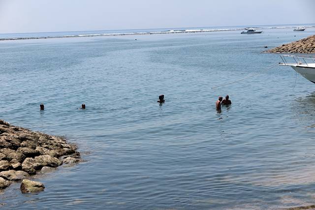 在码头边上 这些人不知道为什么一直泡在海里