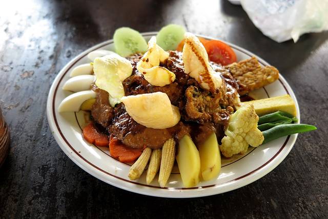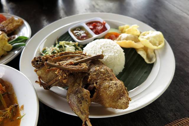 烤乳猪》30K到60K》这才是最好吃的好不好。。。烤乳猪的肉质应该是除了海鲜之外最好吃的了,肉嫩、入味、配合辣椒酱很不错,一般的烤乳猪饭都会配合一碗猪肉汤一起吃,所以价格也便宜可以不用另外点饮料了,任何一家烤乳猪店都可以,看招牌图案就好(一只白小猪),据说乌布皇宫的烤乳猪是最好的,我错过了,但是随便路边一家小店的都很不错,真的,我宁愿一口鸡肉都不要,全吃烤乳猪哈哈;