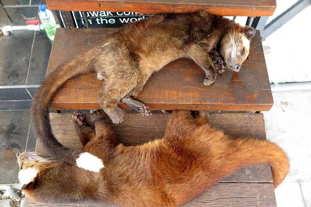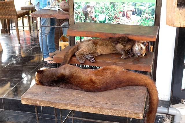 去海神庙的路上会路过猫屎咖啡工厂 么进去 但是在海神庙里也有展示 这两只就是吃多了咖啡豆不消化的猫咪了。。。