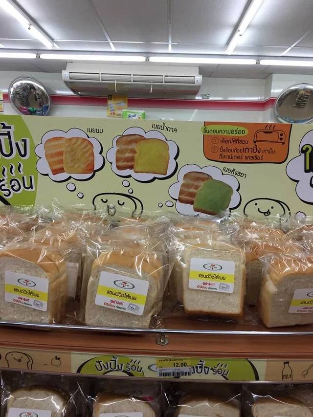 四种口味吐司,推荐黄油炼奶,店员帮忙烤