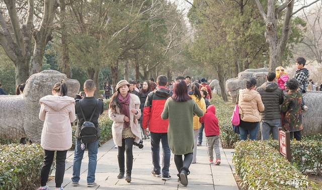 明孝陵的经典画面便是石像路,这是明孝陵的特有的陵寝文化,也是塑造了明孝陵的一张经典名片,所以明孝陵的景区门票都是以此为背景设计,当然最美的画面还是秋天金色落叶下的的石像路,的确美得不要不要的。至于文臣武将,就很普遍,在曲阜的孔林里,也站在几对文臣武将护林。