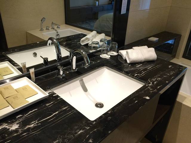 洗手台、龙头、脸盆上都没有水渍,晚上6点左右,在提供开床服务以后,两个小姑娘也把脸盆和龙头上的水渍擦干净了;