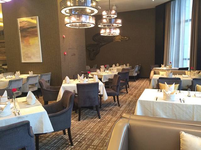 晚餐和早餐都在一楼的五湖咖啡厅,餐厅的环境很赞,靠在青山湖,临着靠窗的位置而坐,心旷神怡。