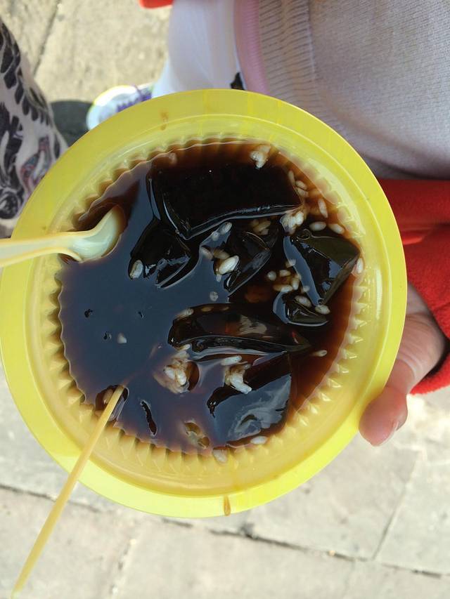 吃了多少小吃具体也不记得了,只记得有家张飞牛肉总店排队很长。另外五元一杯的鲜榨橙汁喝到爽,同行的妹子热爱的冰粉来一张: