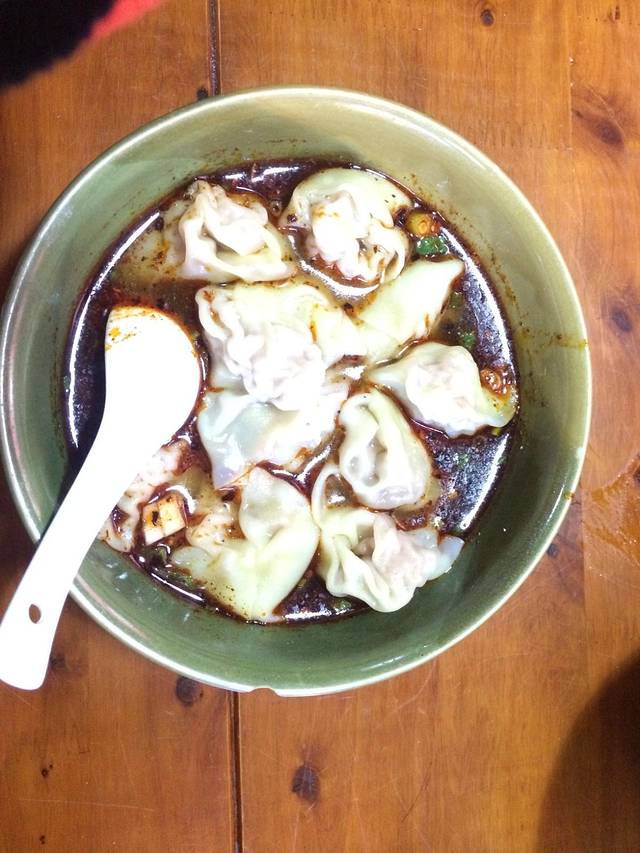 第二天一大早本想吃这里人民小学对面一家很有名的沾水米线,却发现已经搬走了,于是在路边的一家早点店吃了碗抄手。以前没吃过,吃到才发现原来就是大馄钝哈哈,太实在了,吃到一半已经吃不动了。
