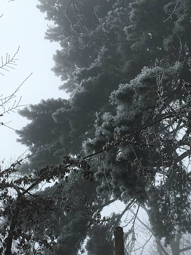 上到三分之二处,是个风口,看到了雾凇