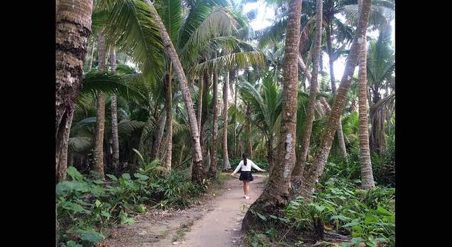 一会儿就到了文昌,入住“去哪儿网”上预订的旅社,稍加休整,换上凉爽的短裙,在旅社的对面乘坐文昌的公交车我们直接就到了“东郊椰林”。那是一大片一大片的椰子树啊,满足了我们对椰子树的向往,漫步在椰树丛中,静静的享受着它们的清香!路上到处都是椰子的身影,喝上一个现切开的椰子水,抱着椰子吮吸着甘甜的汁水,爽极了!喝完水后,当地的村民把椰子完全切开,啊,里面是白白的椰子肉,吃到口里真的超级香浓可口!东郊椰林紧靠着海边,我们很快就来到了大海边,哦,海浪、白砂,褪去鞋子,静静地在海水中行走,凝望着大海,任凭海浪的拍打!