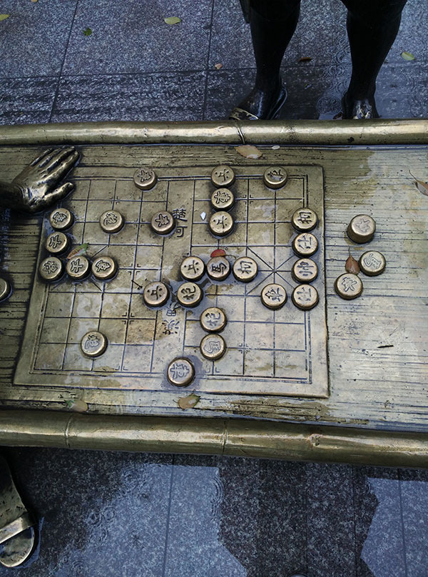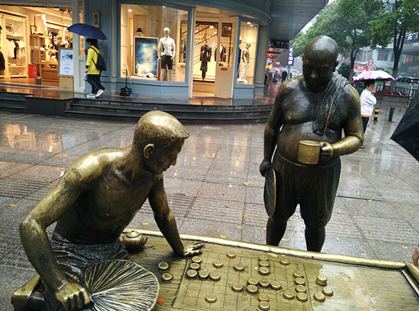 这是步行街里的一座雕塑,两个武汉人正在下棋,我本身不懂棋,但是,能想象得出旧时武汉人闲来无事,在夏天下棋消暑的惬意。