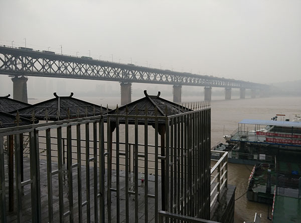 转身上楼梯便是武汉长江大桥,黄鹤楼就在其尽头。不过因为黄鹤楼对我的吸引力不算很大而且有几层正在修缮所以我没有进到黄鹤楼里面。只是远远地望一望了!