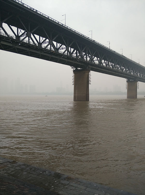 火车在11:00左右慢慢驶进武汉,跨过一条不知道叫什么名字的河,后来又跨过了长江,这样的经历可能此生难再见了吧!