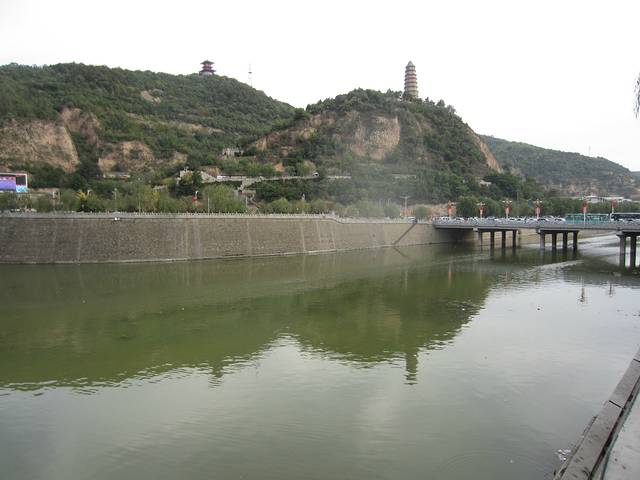 由于才下午三点多,便乘几站公交去看宝塔山。终于见到了小学开始就根植在心里的宝塔山、延河水。站在这片土地上,心情格外激动,脑海里翻腾的都是毛泽东等老一辈同志经历的艰苦岁月。延河水干净清澈,宝塔山巍峨耸立,站在沿河边遥望、遐想……。