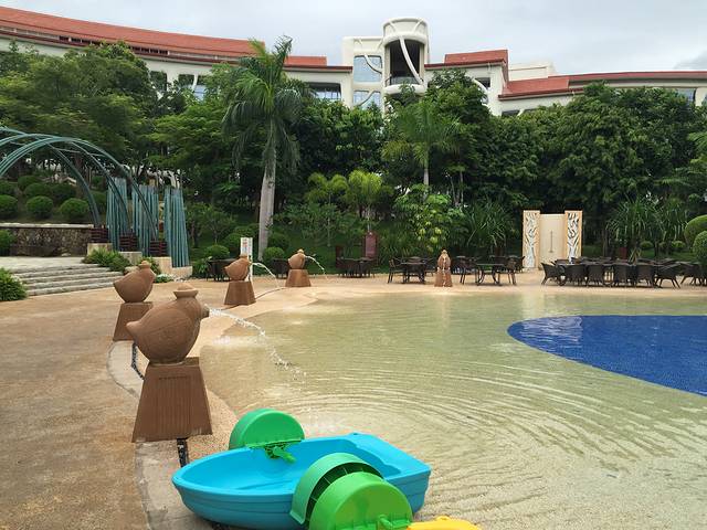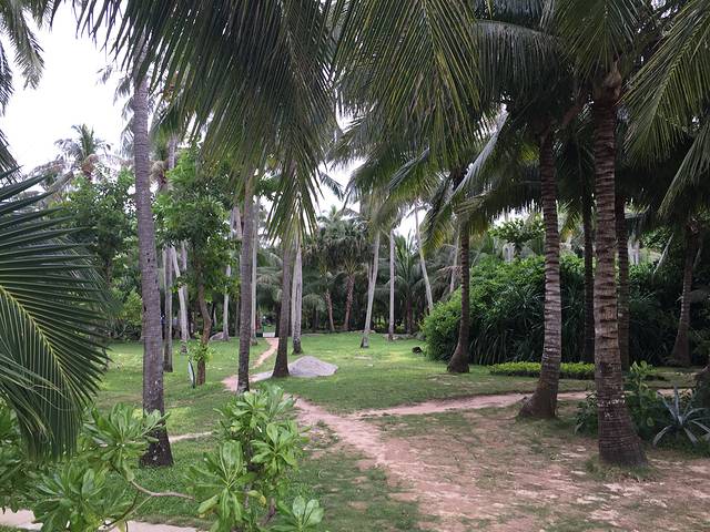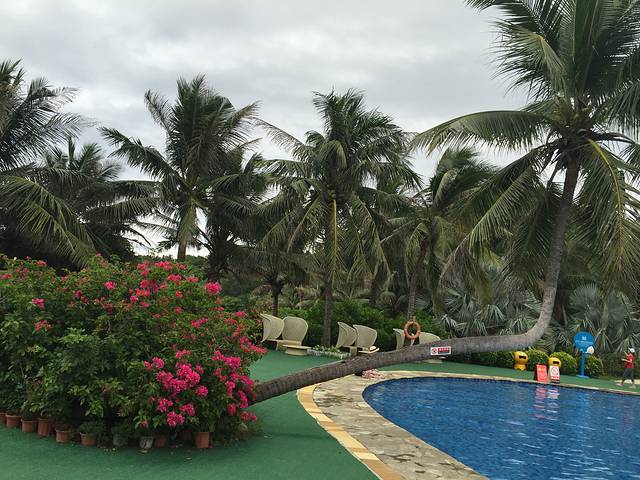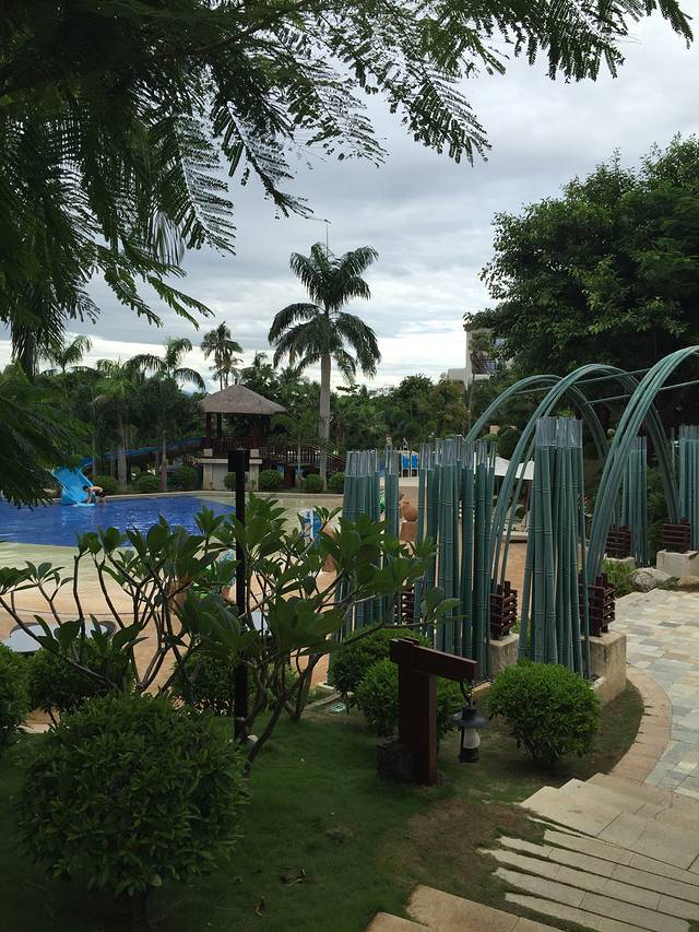 考虑到小妞中午睡午觉问题所以订的早上10:40的飞机,中午12:30到的三亚凤凰机场,出了机场就看见海棠湾9号温泉度假酒店的司机师傅已经在那里等我们了,大约二十多分钟直达酒店,迅速办好入住手续,就到了房间,景色绝对,午餐是在飞机上吃的,所以下午就在房间里泡了个温泉,小憩一会儿,注:海棠湾是唯一一家温泉入户的酒店,非常适合我们这种拖老带小的家庭出游。小妞睡醒时已经下午五点钟了,于是选择去楼下走走,海棠湾9号太美了,整个酒店就是一个私家花园,晚饭在酒店中餐厅解决的,点的是299的套餐,有鱼、有虾、有肉、有甜品、有水果,吃的好饱,个人觉得在酒店吃,首先卫生问题不用担心,而是口味还一流,都是五星级大厨,而且不要为吃饭、打车问题操心,反正都是钱倒霉了。晚饭后小妞又泡了个温泉,因为很舒服,一直睡到第二天自然醒