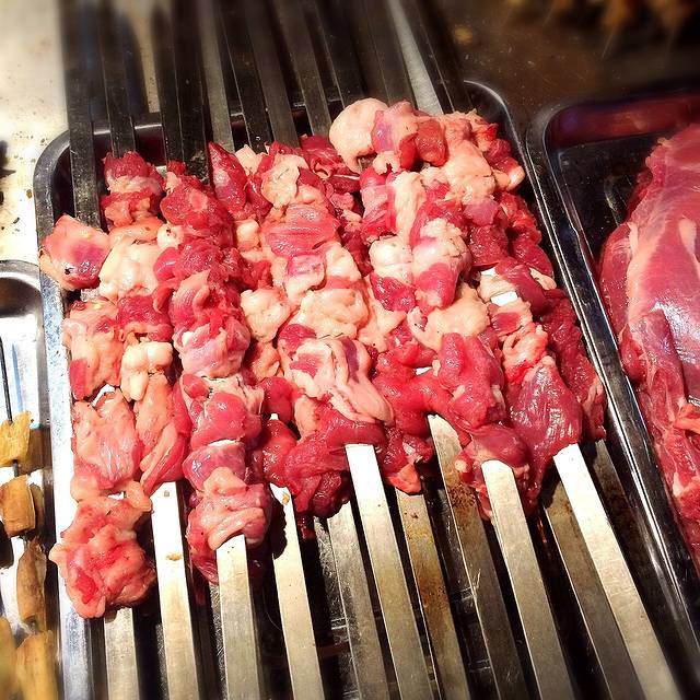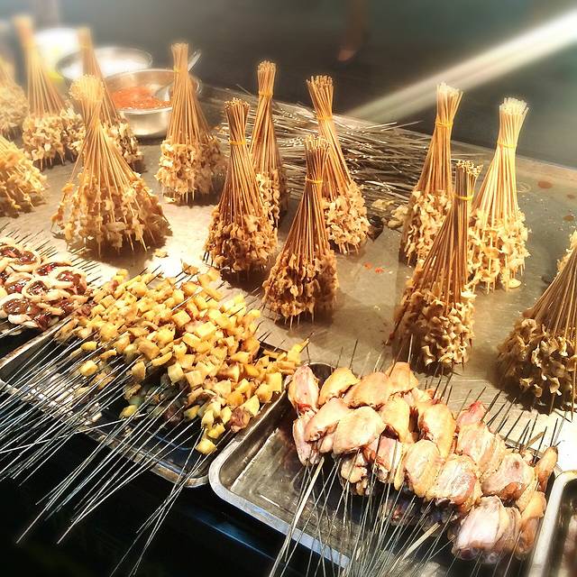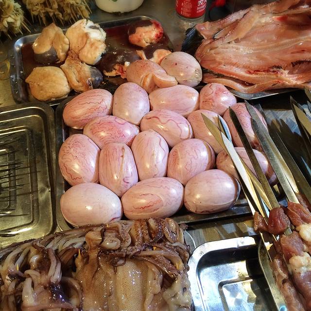 开封的夜生活和小吃名不虚传,其中鼓楼夜市是糊弄外地游客的,本地人大多数都来这里。但这里的规模依旧让我吃惊,羊肉串膻味极浓极其正宗,涮牛肚40元一把,还有开封灌汤包、杏仁茶、酸奶炒芦荟等当地特色美味。