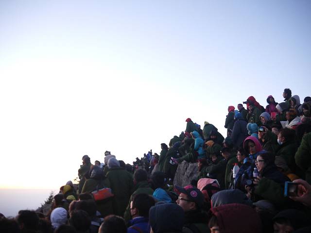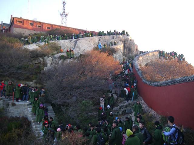 这是今天早晨6点一刻日出时拍的照片,为了登上泰山之巅我们差点搭上半条命。寒冷、疲惫、困倦……任何词语都无法准确描绘出我们当时遇到的窘境,但还好我们谁都没有放弃。