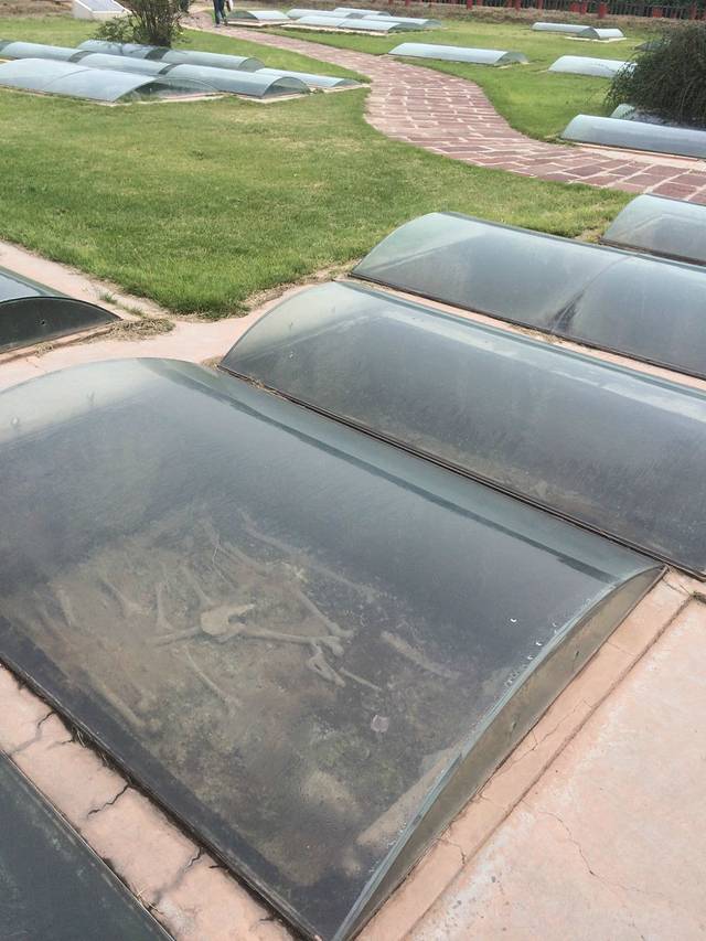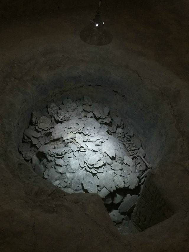 王陵区距离宫殿遗址还有5公里远,还好景区有免费的摆渡车,十一假期伊始游客还不多。这里有商朝王陵十几座,其中一座没挖完的很可能是商纣王的墓穴。开放的唯一一座M260墓坑出土了世界上最大的青铜器,司母戊鼎。