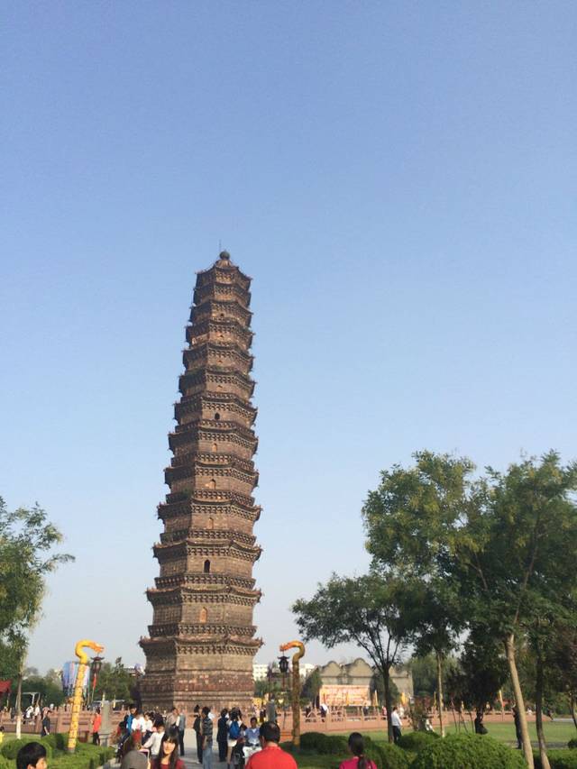 下午第一站,铁塔公园。铁塔其实不是铁,而是琉璃,颜色像铁而已。铁塔也建于北宋年间,和上午去过的繁塔一样历史悠久,也是北宋东京城仅存的历史建筑,更是开封古城的标志。门票40元,登塔还要30元,比较坑。