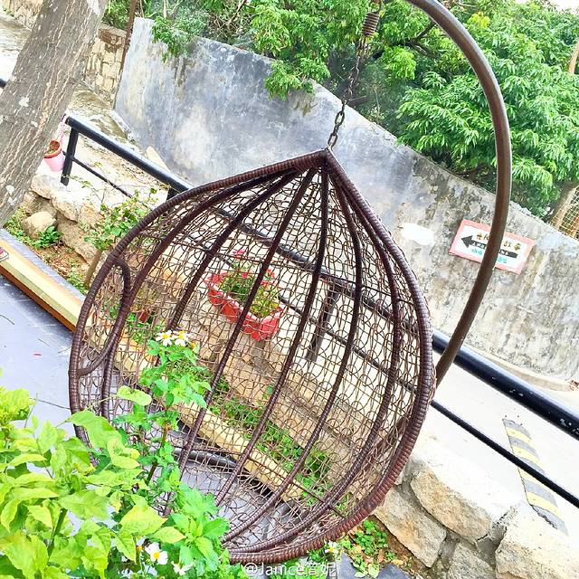路过的特色民宿,看不到海却别有一番花园房的景象。在较场尾有非常多的民宿,风格各异十分讨好。尤其夏季的周末,更是常常整栋被”包“了的状况。去年中秋节,我和简爷就连同家里的狗狗一起接过来过节,记忆犹新。