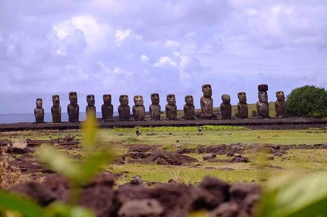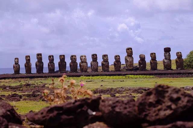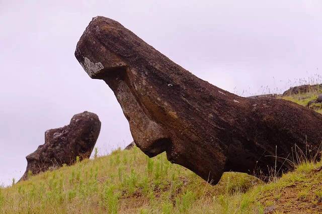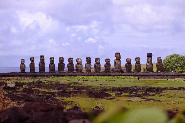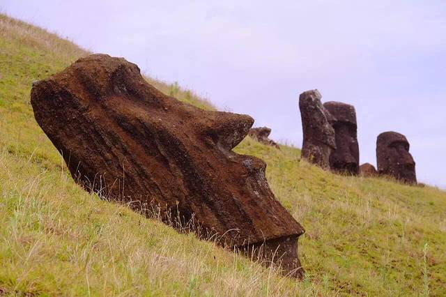 1960年智利地震引发的那场海啸 将Tongariki的Moai向陆地推进了100多米 原先30个Moai只留下现在的15个被修复 搬运回原先的位置…