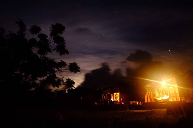 复活节岛第一夜 天空云比较多 但素有星座之王美誉的猎户星座依然很清晰 看见猎户腰带上的三颗宝石了吗 有句民谚说 “三星高照 新年来到” 指得就是这三颗排成一线的星星