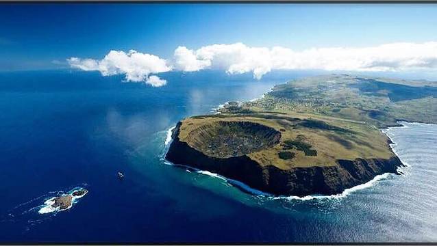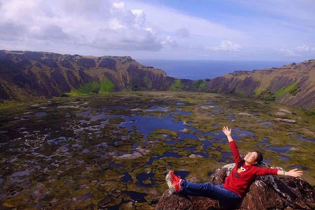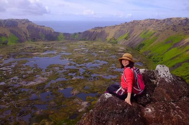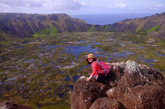 复活节岛的形成源于3个火山的喷发 Rano Kau就是其中之一 火山口直径超过1公里 深度达200多米 火山口底部的淡水一直是岛民的主要水源 火山口临海的一侧有个大缺口 当地人称Kari Kari 是曾经海水冲击断壁使得火山口不稳定而出现坍塌所致 令人费解的是 火山口底部的芦苇原产自南美秘鲁的Titicaca湖 难道南美安第斯山脉的原住民曾经到过这里?两地的最近距离估计要在4500公里以上啦