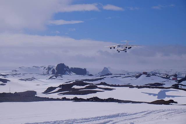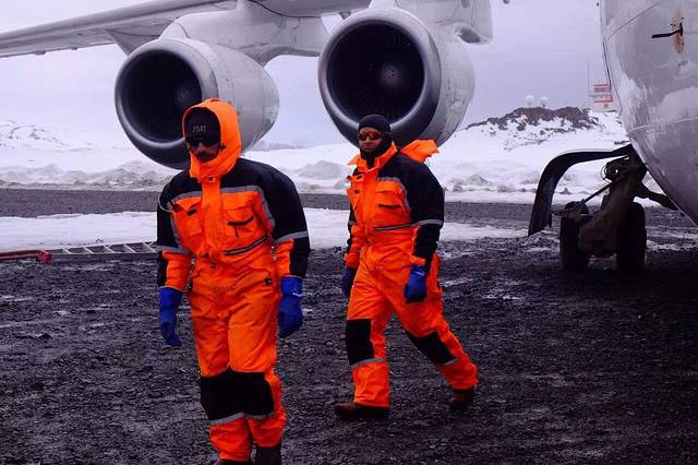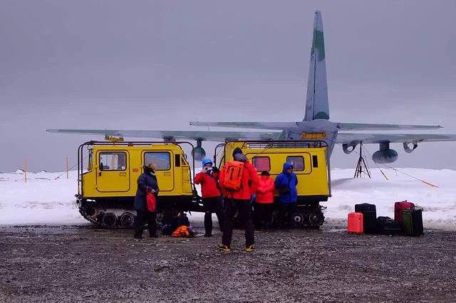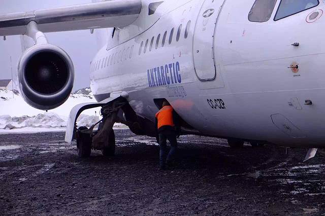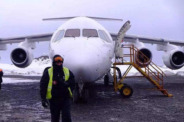 BAE-146拥有20年安全飞行南极的记录 4个涡轮发动机 超短跑道降落 载客能力76人 原以为内部非常破旧甚至没有座位 可惜有点遗憾 除了窗户小一点 和普通飞机别无两样 餐食还异常丰富 大概是为了下飞机要自己背包 在雪地里冒着8级大风徒步30分钟吧 那队伍阵型 让我想起企鹅路队啦