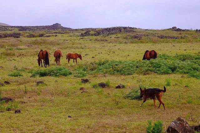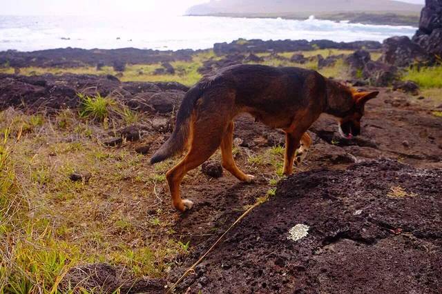 复活节岛的尽头 茫茫大海 终究找不到能量石 却发现一个荒芜的渔村 登高远眺许久 回头竟有一只小狗 默默趴在我的身后 温良地等待 …嗨 你是哪里来的?我要走了 你回家吧!…它却一直跟着我 …美妙的相遇 即使只是一只狗 注定这个地方我还会再来