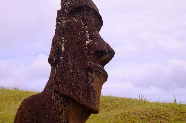 Rano Raraku 是一座火山 也可以说是复活节岛上所有Moai的孵化器 Moai就是在这里的火山山体内 整体雕刻出来 然后搬运到岛上的各个位置 现在 这里依然散落着400多个或站立 或扑倒的Moai 甚至有Moai一半身体与火山相连 如同未出母体的婴儿