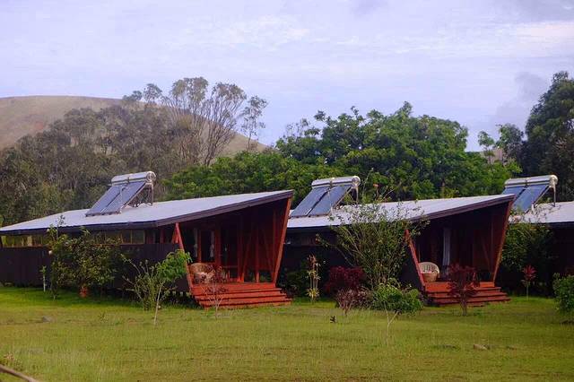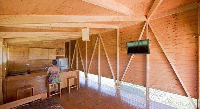 cabañas morerava …由智利建筑事务所 AATA 设计的这4栋木质小屋专门为这个环境脆弱 风景无双的基地建设 脆弱的环境条件决定了这个设计的风格及施工步骤 预制遮蔽棚是从南美本土远送来的 在当地现场装配 狭长的建筑形态依附于升高的平台 尺寸都经过细致的计算 争取不浪费一丁点材料 所有建筑施工力求对岛屿环境产生最小的影响 建筑所需的功能设施 例如水电都取自太阳能电池板和雨水收集系统 尽量减少水和汽油等资源的消耗 尽量少用或不用这些对岛屿环境可能造成危害的能源设施