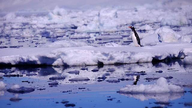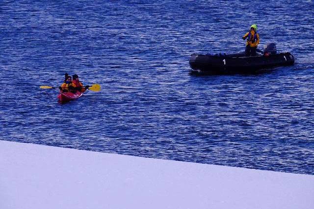 下午1点多 雷达发现鲸群 探险队临时广播 出动冲锋艇7艘追击素有杀人鲸之称的虎鲸 这家伙个儿不大 却十分凶猛 以企鹅海豹为食 …冲锋艇划过浮冰的撞击声 成了此时此刻最美妙的配乐 虎鲸在一只落单的金图企鹅附近兜圈子 背戟在水面时隐时现 企鹅已经感觉到危险 一声哀鸣 旋即一个漂亮的跳水动作 溜走了