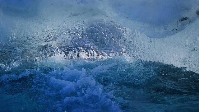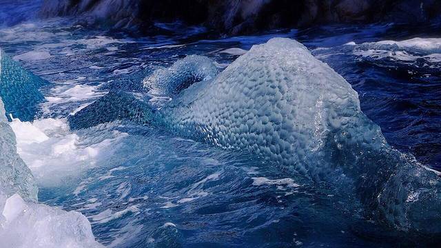 千年的雪可以化冰 万年的冰成为冰中极品 “黑冰” 万年间 冰内的压力不断排挤气体 阳光折射后 呈现比常见的蓝冰暗得多的灰黑色 两次看见的黑冰 表面都有明显的鱼鳞纹 应该是万年的水冲刷留下的痕迹
